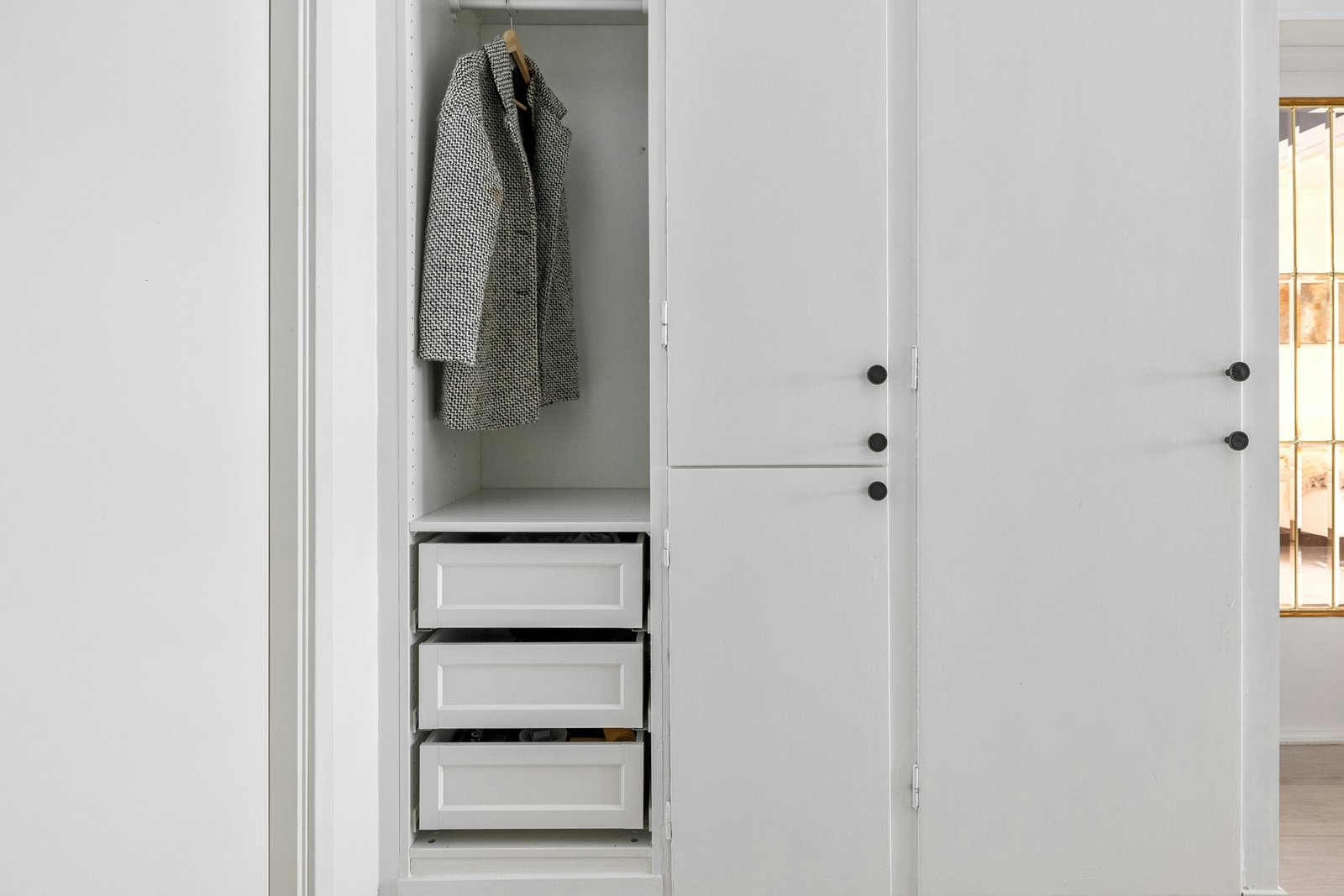 Modern, space-saving wardrobes ideal for compact rooms or areas with limited clearance.